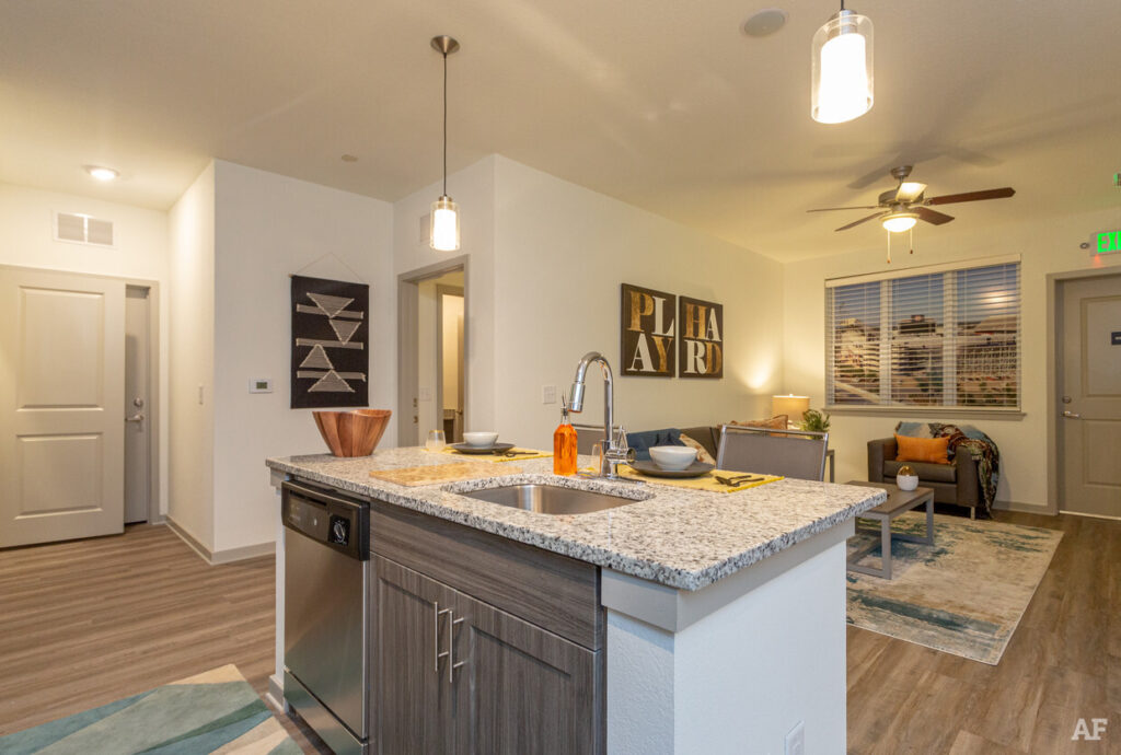 Located a mere five minutes away from the University of Nevada-Reno, Canyon Flats apartment complex allows students to take in all the sights of Downtown Reno, Nev. The facility incorporates The University’s spirit, with imagery of The University’s Wolf-Pack athletic mascot front and center in its design.